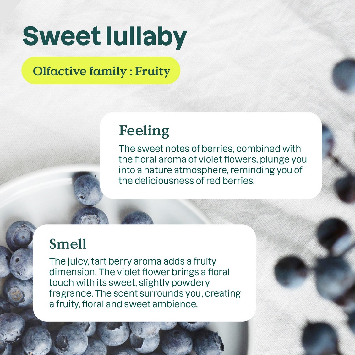 - Zartes Sweet Lullaby-Duft: Eine beruhigende Mischung aus Beeren und Violette.