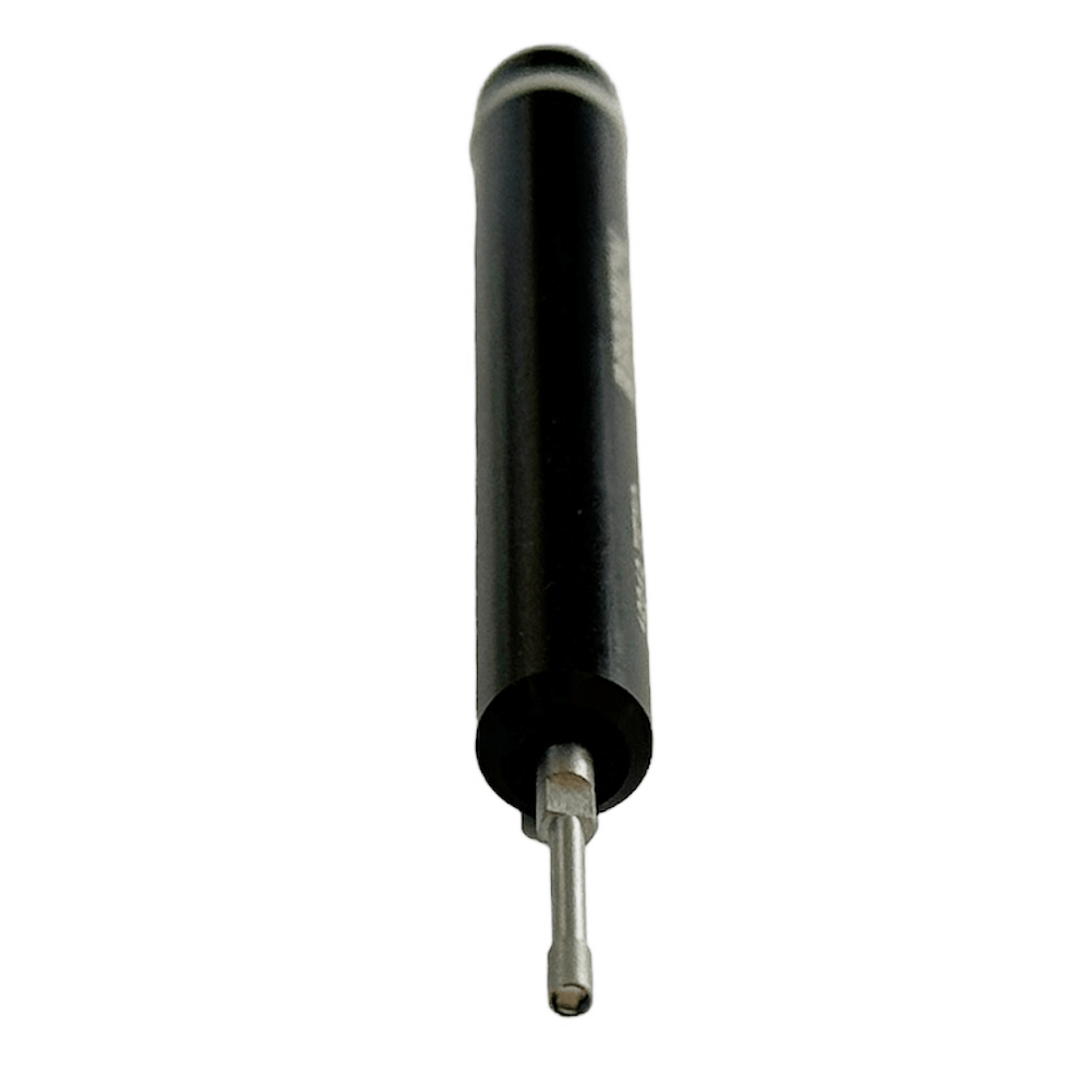 Mit diesem Werkzeug wird das Steinschrauben einfach und effizient aus dem Halterungsbereich gedrückt. Die Konstruktion, mit einem Durchmesser von 6 mm und einer Länge von 63 mm, passt perfekt in die Öffnung zwischen dem Steinschraubenhalter und dem Regulator. Das leichte Gewicht von nur 3 Gramm sorgt für eine komfortable Handhabung.