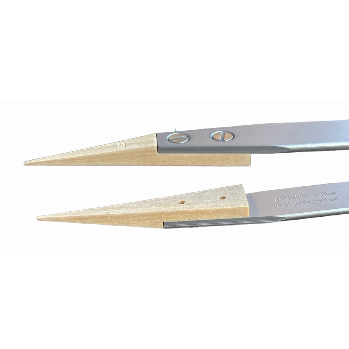 Diese speziell gefertigte Tweezer aus antimagnetischem Stahl mit austauschbaren Holzspitzen ist die ideale Lösung für die präzise Handhabung von empfindlichen Bauteilen. Dumont hat mit der 159 ein innovatives Design entwickelt, das maximale Kontrolle und Sicherheit bietet.